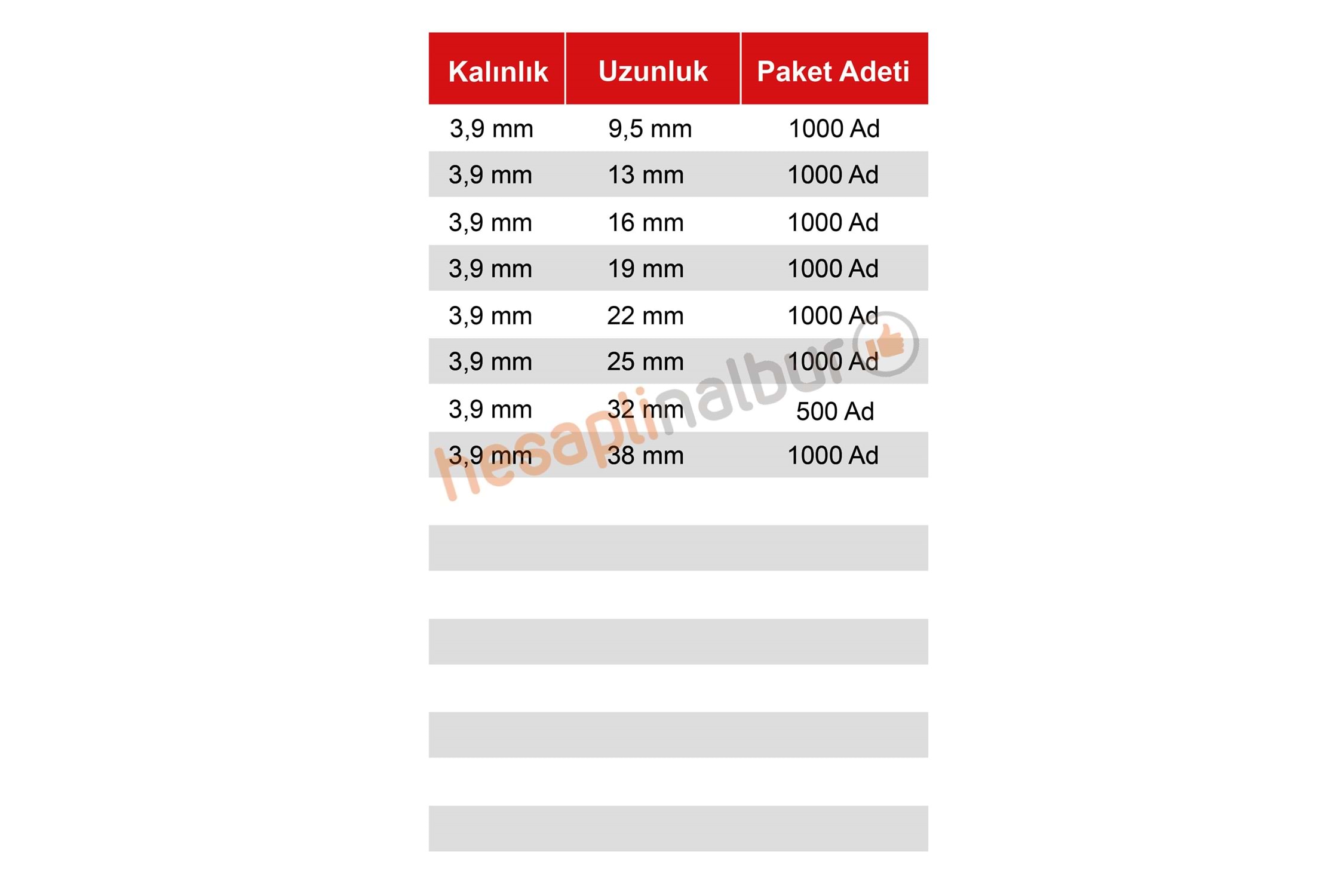 Meridyen YSB Matkap Uçlu Vida 3,9x19 MM 1000 Adet