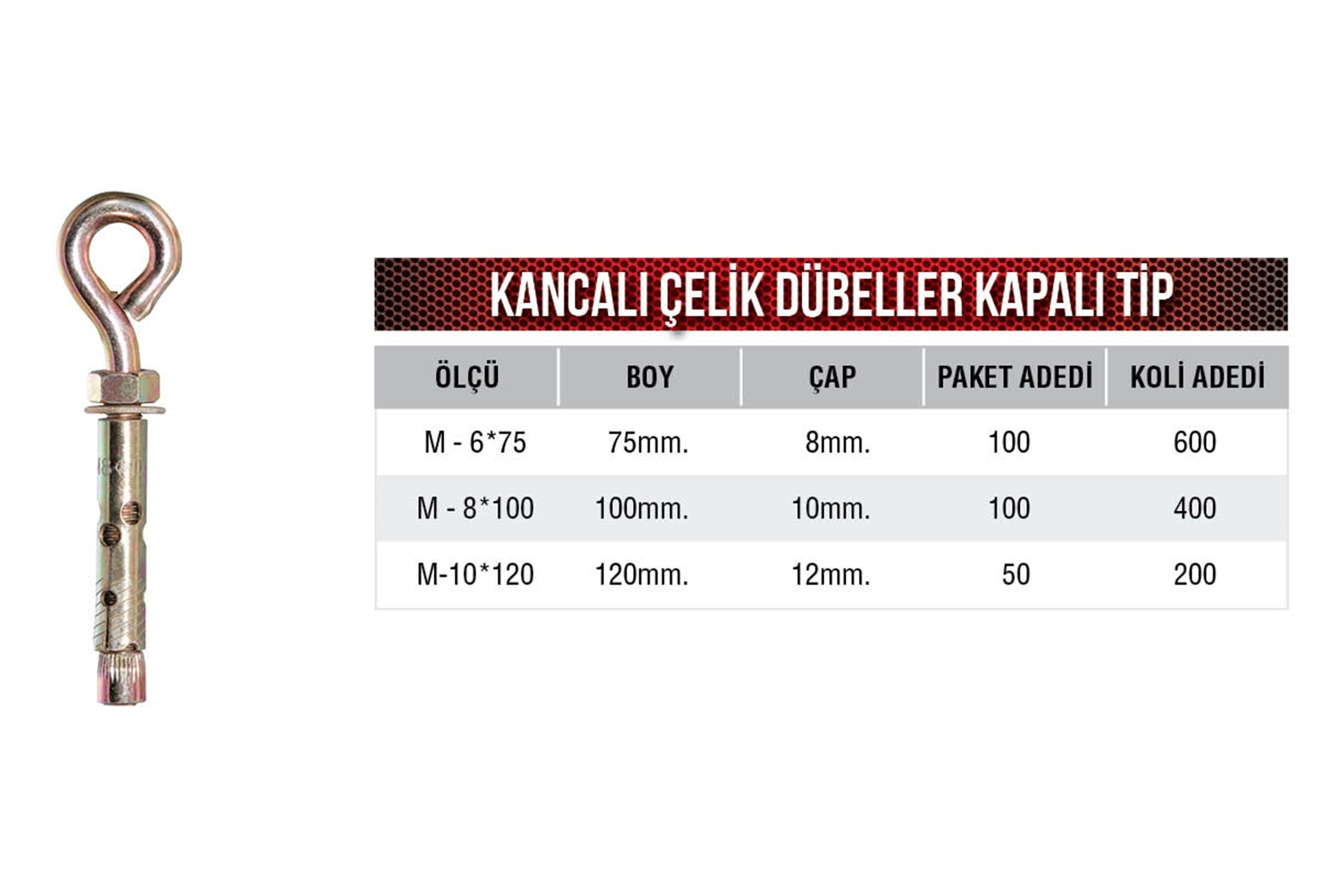Çelik Dübel Kapalı Uçlu Kanca M6 (6mm x 75mm)