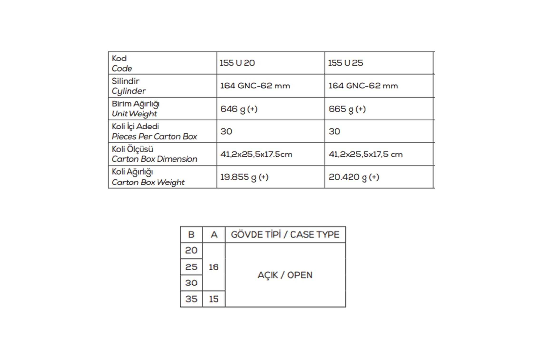 Gövde çelik ve galvaniz kaplamalıdır.